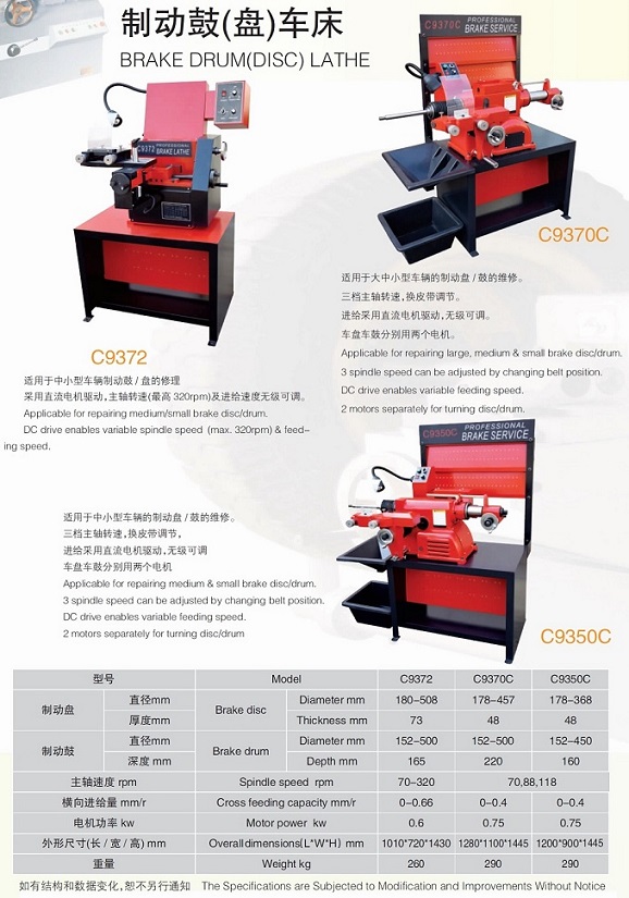 【簡(jiǎn)要說(shuō)明】: 可修理奔馳、寶馬等品牌汽車(chē)的部分車(chē)型的剎車(chē)盤(pán)及剎車(chē)鼓。 主要技術(shù)參數 Main Specifications C9